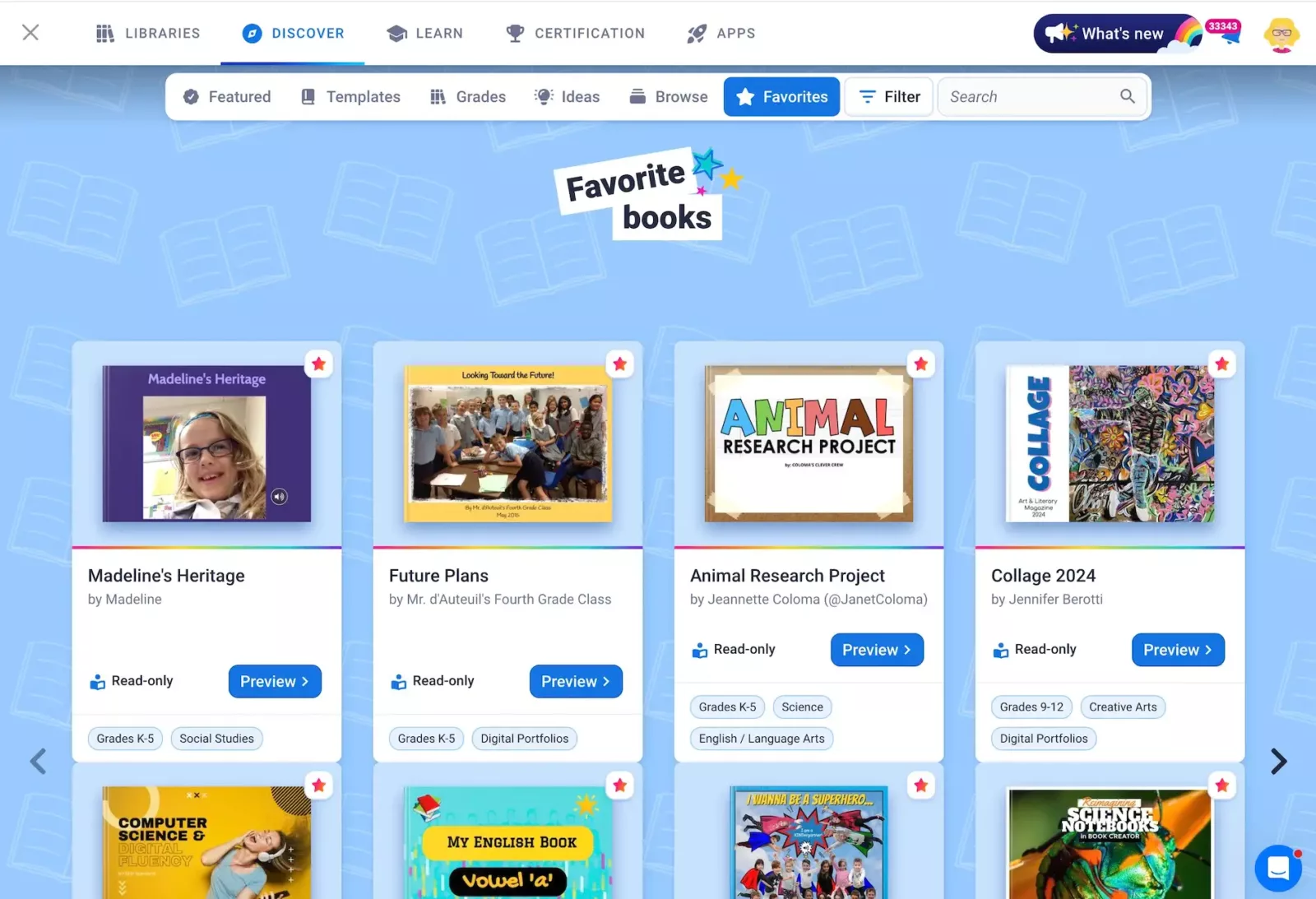 Search, filter, and favorite are now live in Discover and Public Reader, making it easier than ever to find Book Creator content you can remix and customize for your lessons and learners.